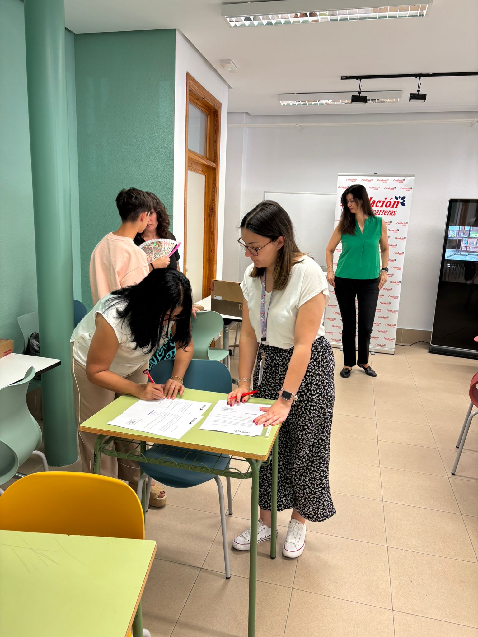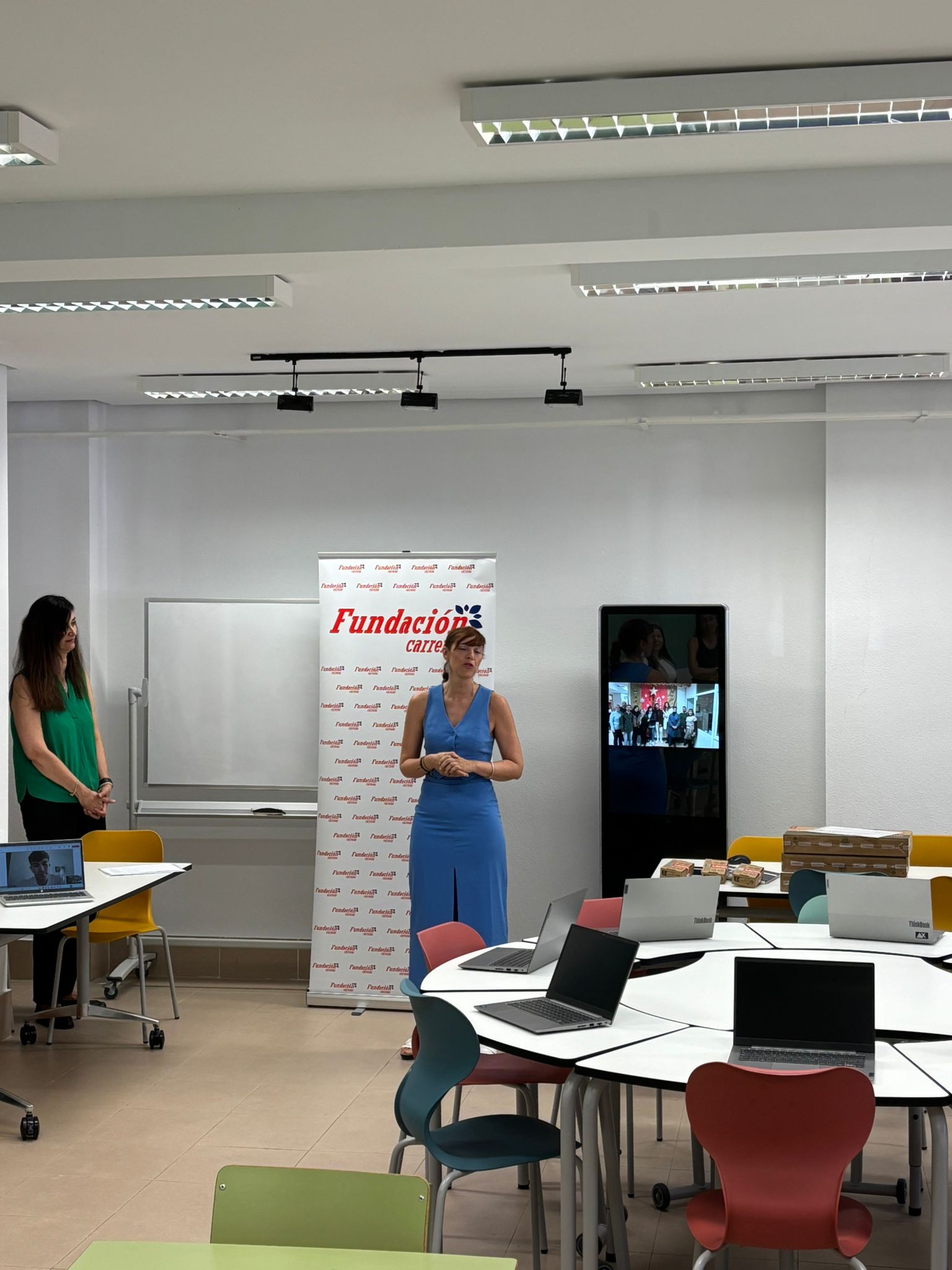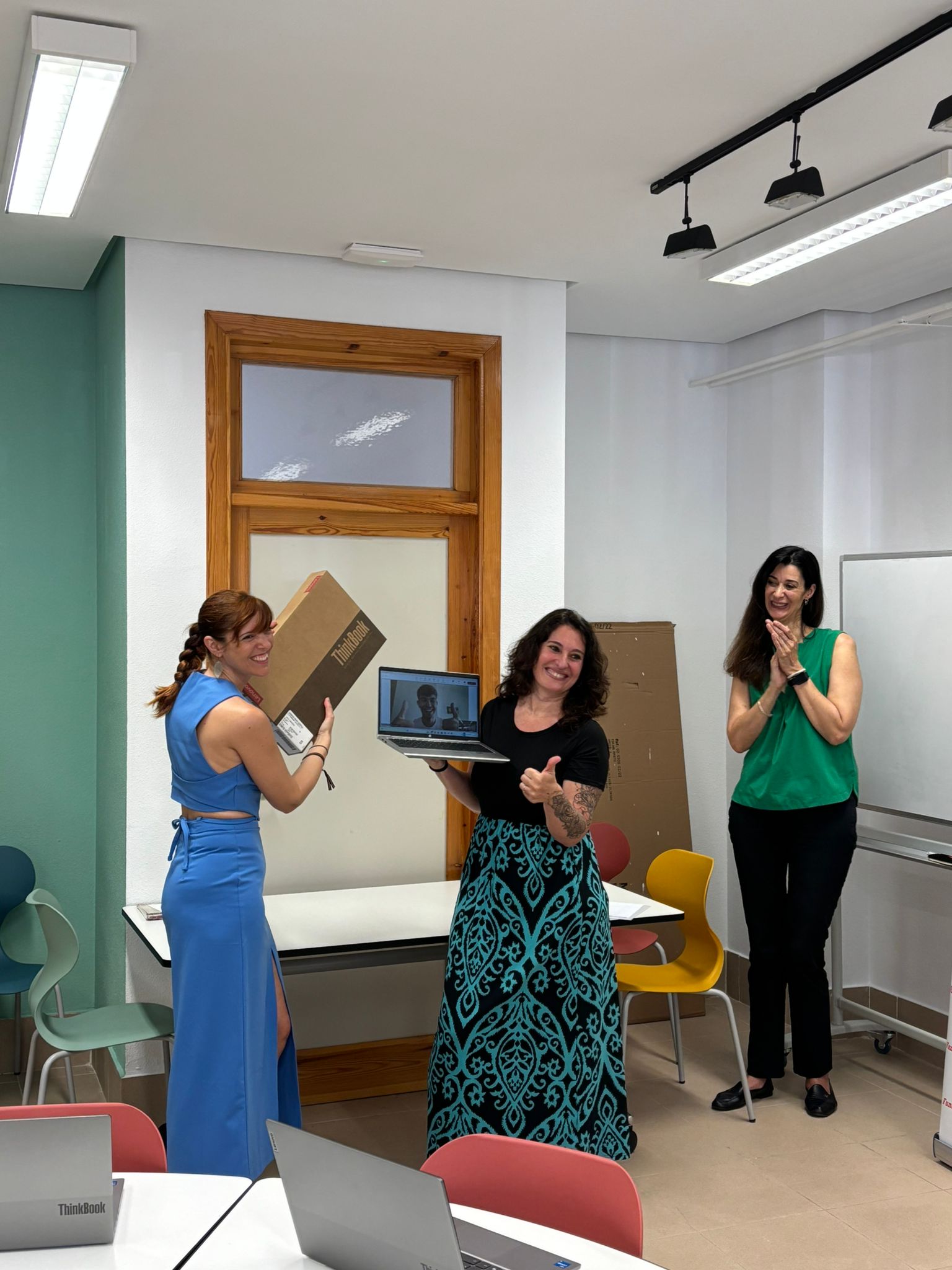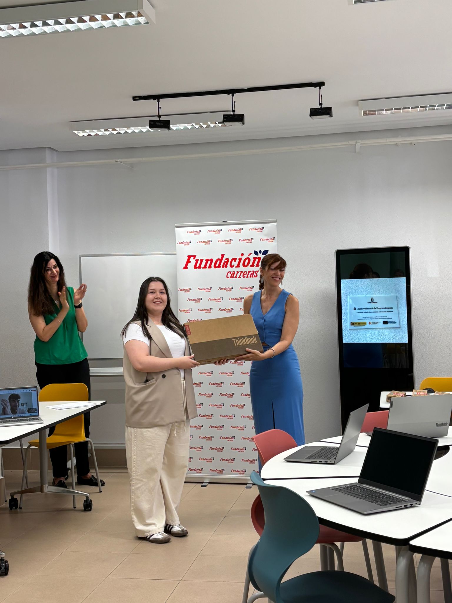 Ha hecho entrega de tres ordenadores para 3 de nuestros alumnos en el Aula de Emprendimiento del centro.